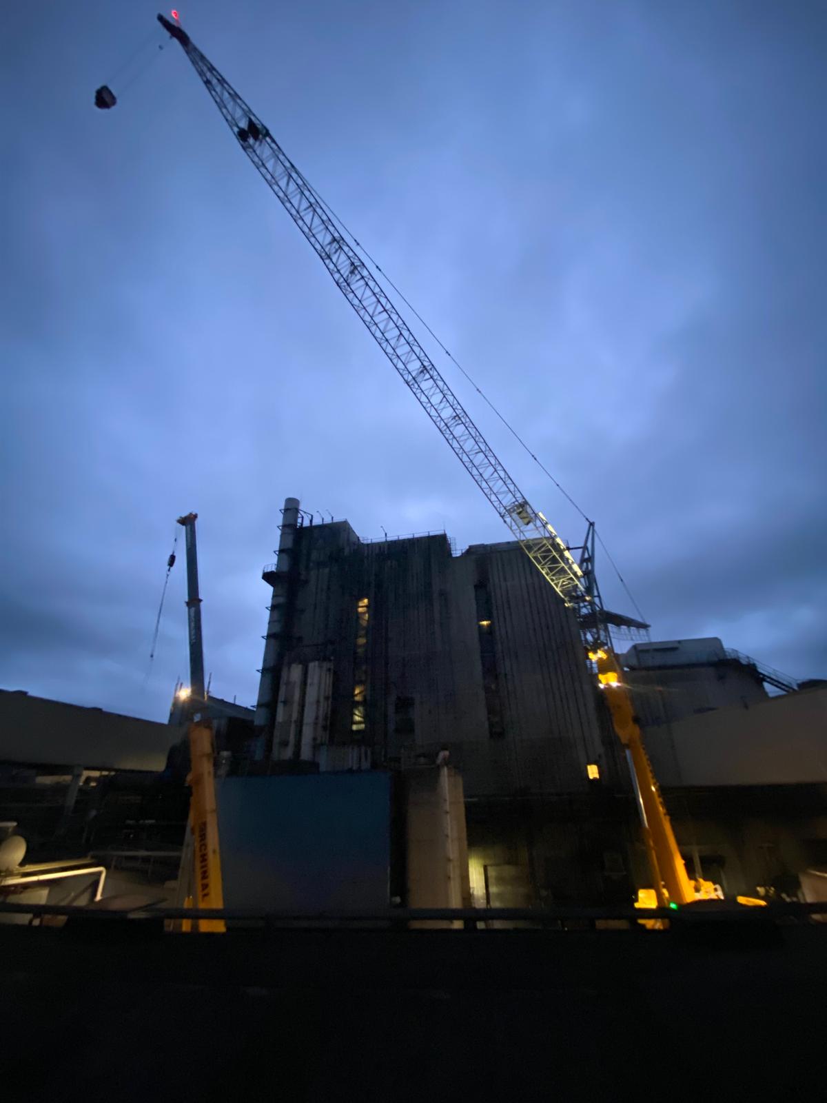 LTM 1300 verhebt Stahlelemente für die Fertigstellung der Vorschubbrüstungen.
