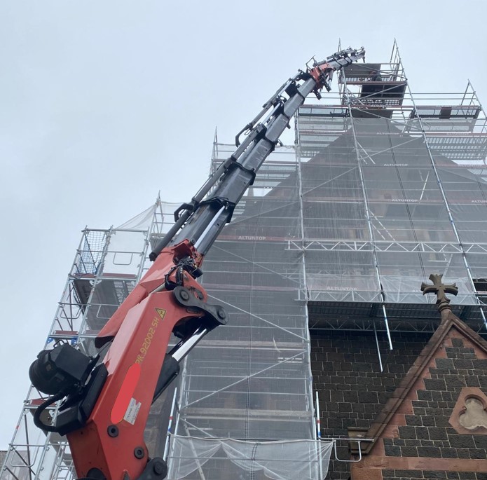 PK 92002-SH verhebt Giebelspitze der Stadtkirche in Biedenkopf.